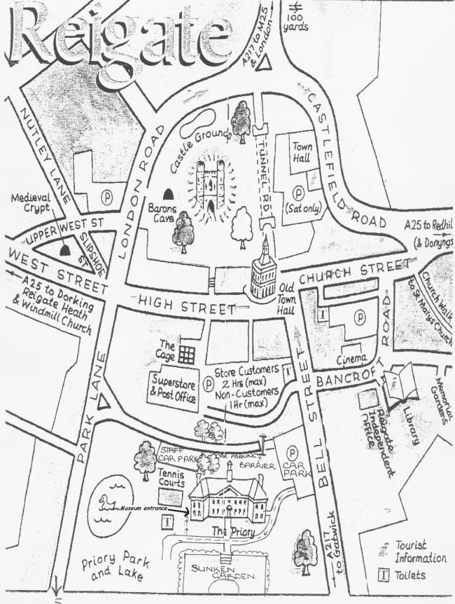 A map showing the entrance to Reigate Priory Museum.